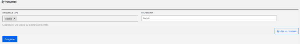 Like Relevanssi or SearchWP, Findstr allows you to manage your synonyms directly from your WordPress dashboard. You can add, edit, or remove word associations to adjust the search engine’s behavior according to your editorial needs. This flexibility lets you tailor the search to your field, industry-specific vocabulary, or language preferences, while ensuring that stop words don’t affect the results.